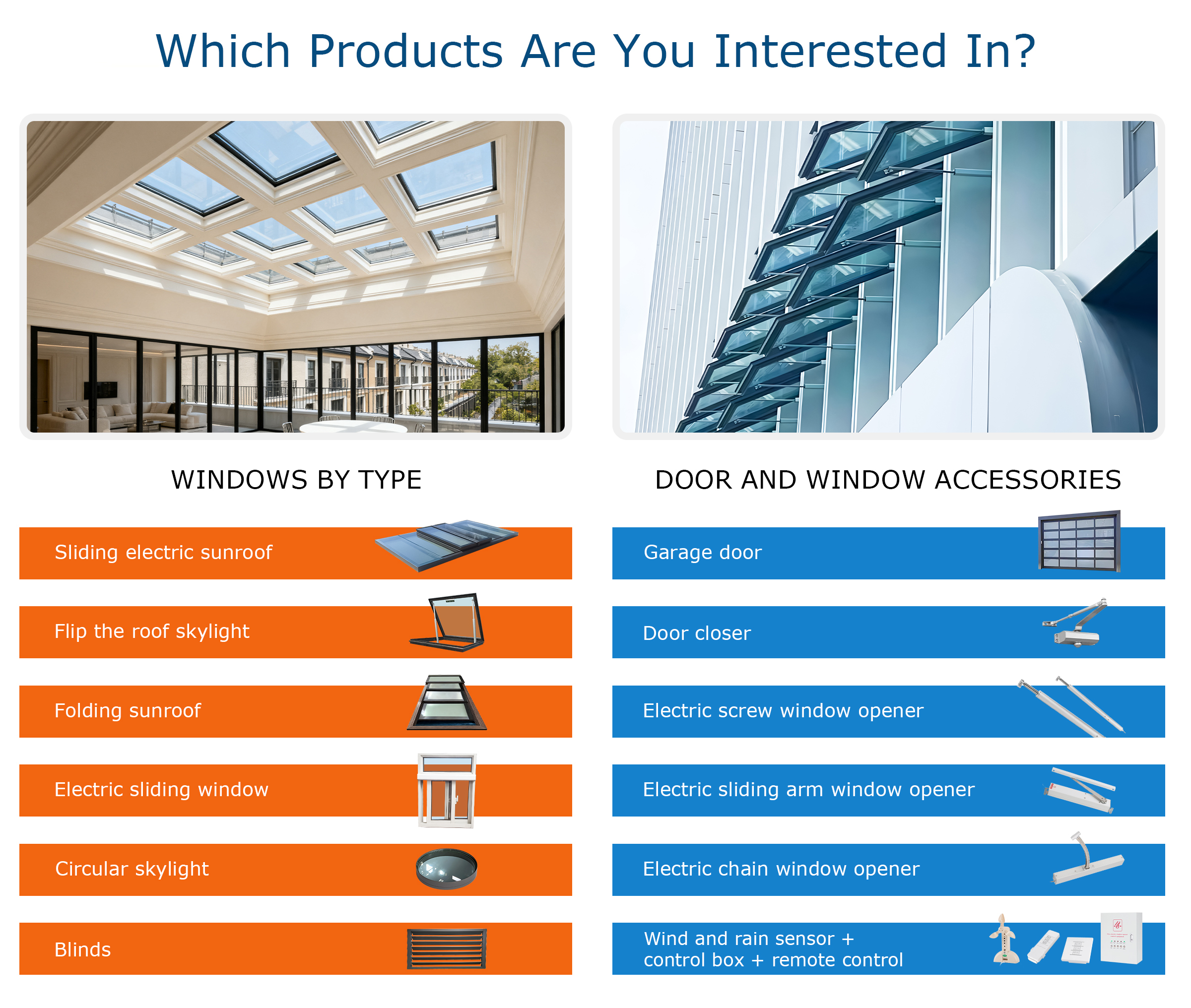 Principais produtos:Abridor de janela elétrico, abridor de janela de corrente elétrica, abridor de janela de braço deslizante elétrico, abridor de janela deslizante elétrico, sensor de chuva